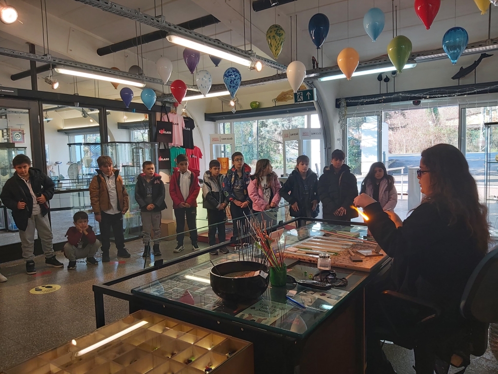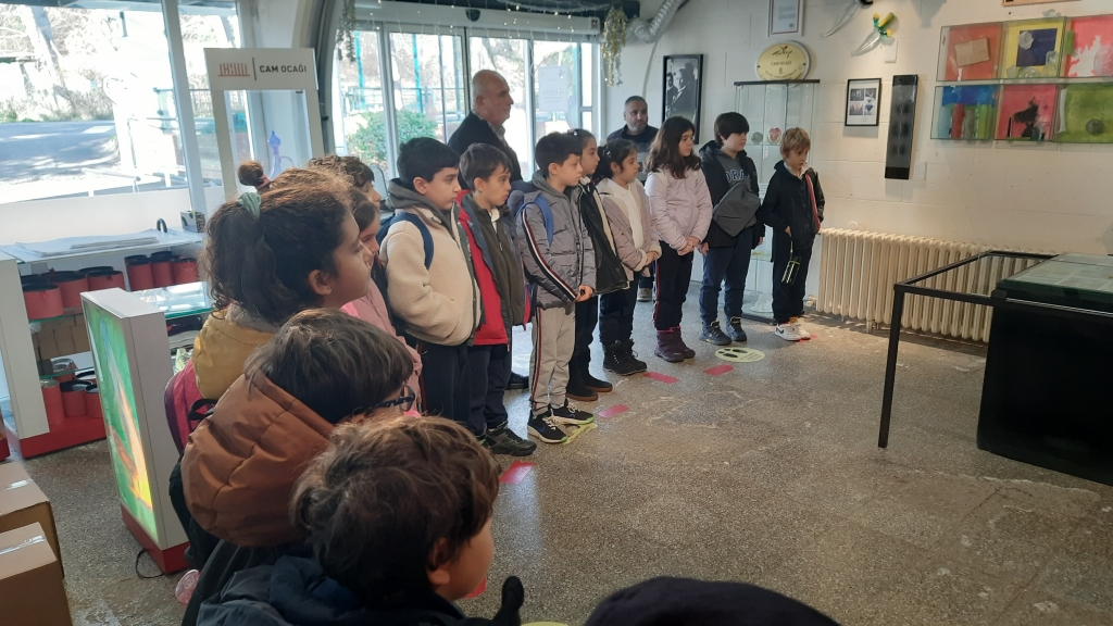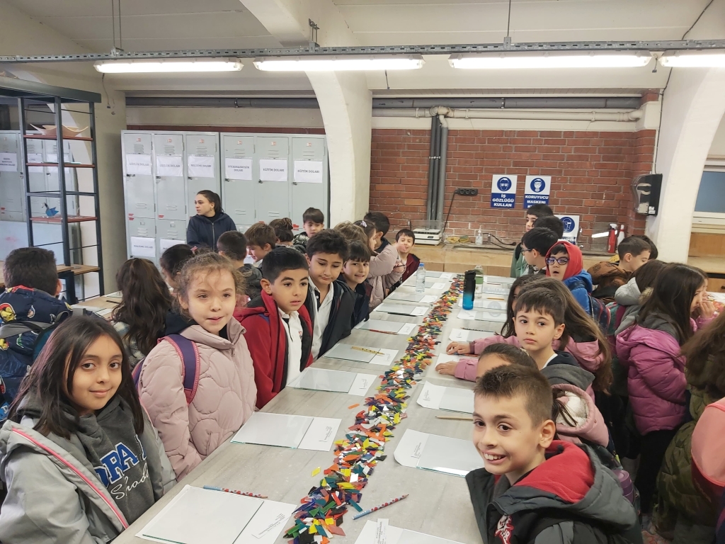 Tacoma Cam Müzesinde hazırlanan “Ateşin Ustaları” çizgi filmini seyrederek, camın bulunuşu ve tarihiyle ilgili bilgi edinen öğrencilerimiz daha sonra sıcak cam atölyesindeki cam üfleme gösterisiyle camın nasıl şekillendirildiğini izlediler. Edindiği bilgilerden sonra öğrencilerimiz füzyon atölyesinde hayal güçlerini kullanarak füzyon çalışmaları gerçekleştirdiler.