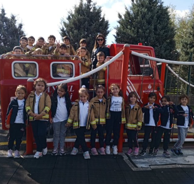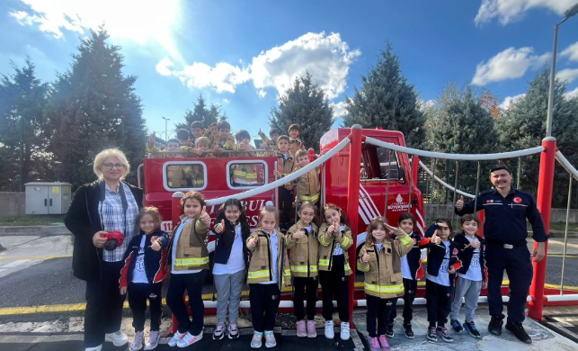 Yangın söndürme tatbikatına katılan ve itfaiye aracını yakından tanıyan öğrencilerimiz, güvenli yaşam bilincini pekiştirdiler.