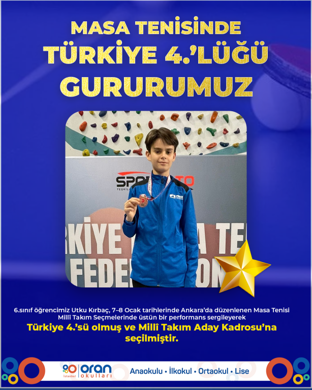 Masa Tenisinde Türkiye 4.lüğü Başarımız