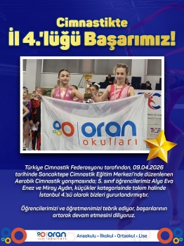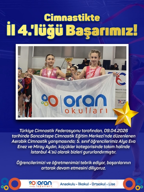 tarihinde Sancaktepe Cimnastik Eğitim Merkezi'nde düzenlenen Aerobik Cimnastik yarışmasında; 5. sınıf öğrencilerimiz Alya Eva Enez ve Miray Aydın, küçükler kategorisinde takım halinde