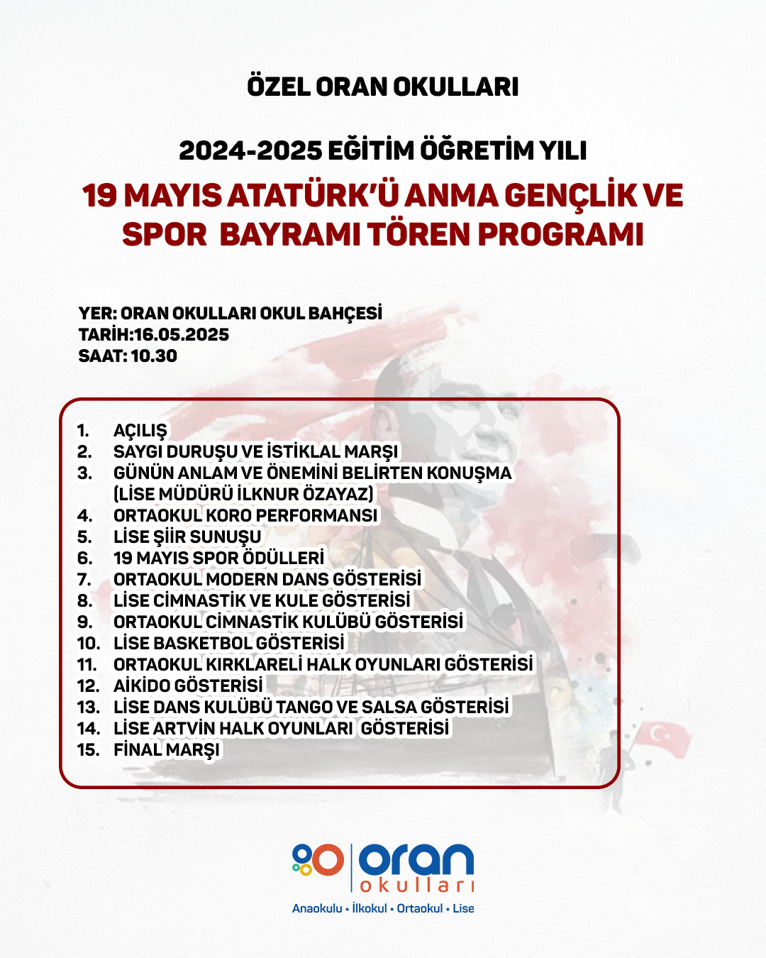 19 Mayıs Atatürk'ü Anma, Gençlik ve Spor Bayramı Tören Programı